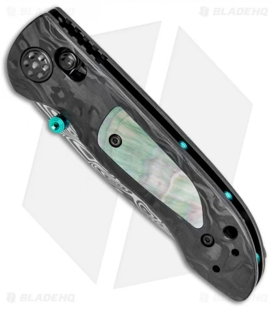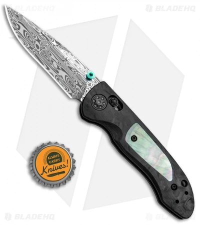 This Gold Class Edition Foray model has been upgraded with premium materials including a Loki patterned Damasteel blade and a marbled carbon fiber handle with an impressive mother of pearl inlay. Black DLC coated hardware, and blue anodized accents finish off the stunning Gold Class design.