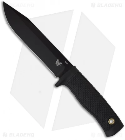 The Combat Survival Knife CSK II is a simple, well designed tool from Benchmade. The black powder coated 1095 steel clip point blade keeps and takes a nice edge. The tactile soft surfaced Santoprene handle grip makes wielding the blade more comfortable in wet and tough circumstances. The Benchmade 158 CSK II includes is a multi-function black leather sheath with a Malice clip for MOLLE compatibility.