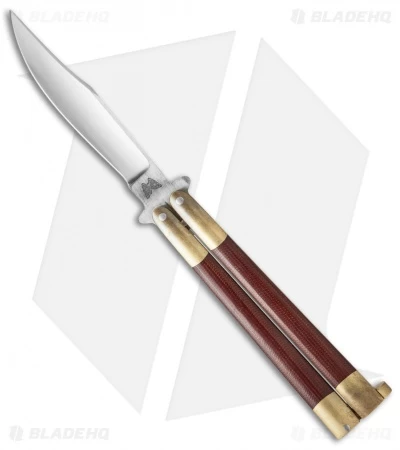 This Bali-Song model features an Imada high hollow ground blade and brass handles with red rag Micarta inlays.